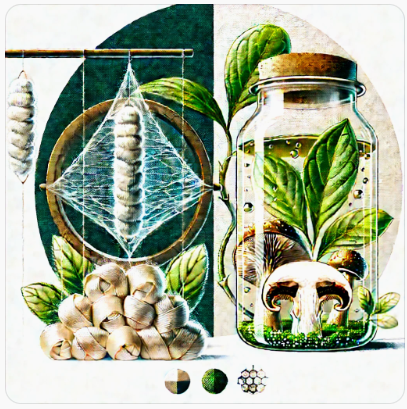 균류, 특히 버섯은 더 놀라운 소재를 생산합니다. 버섯은 셀룰로오스뿐만 아니라, 키틴이라는 다당류를 기반으로 한 원단을 만들어냅니다. 키틴은 곤충의 외피나 갑각류 껍질에 존재하는 단단한 생체소재입니다. 버섯은 이를 단백질과 결합해 가죽과 유사한 복합 원단을 형성합니다. 이른바 '버섯 가죽'입니다.